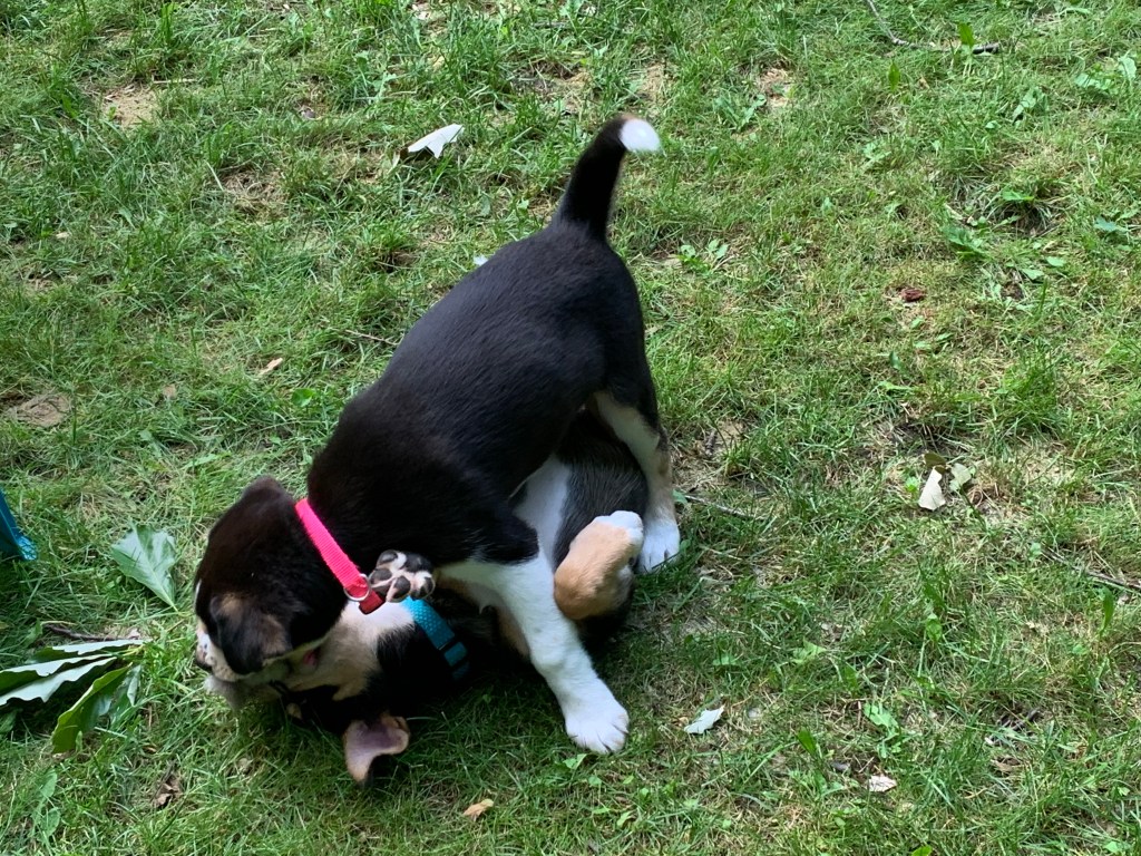 Did you get to see that beautiful moon on the 20th? While I was not able to pull this newsletter together on time, I did get outside that evening to gaze up at a moon that glowed like an LED light. My 5 month old puppies, Kane and Skye, wrestled on the moonlight dappled grass. A sight impossible to photograph. The photo below was captured in daylight (obviously) by my husband when our bundles of fur were a bit younger.