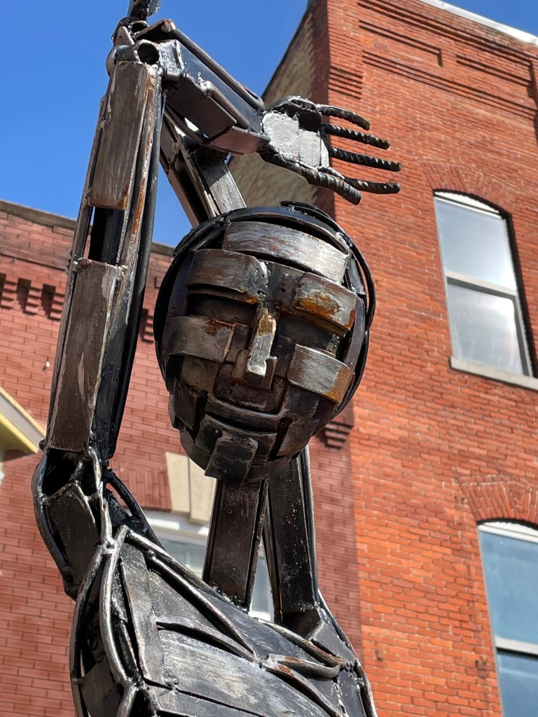 I met the most charming lady on a recent trip to Sutton’s Deli in Angola, Indiana. She stood tall and proud, a smirk of whimsey on her sculpted lips. I wish I looked that good standing on a square. From the mind and hands of master sculptor Greg Mendez. Check out his portfolio, many commission a dancer of your own. https://www.gregmendezsculpture.com/